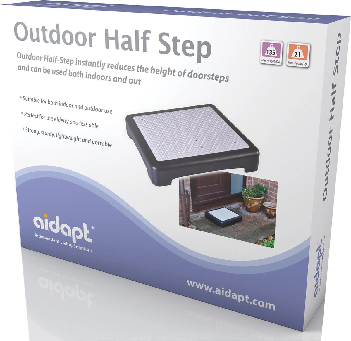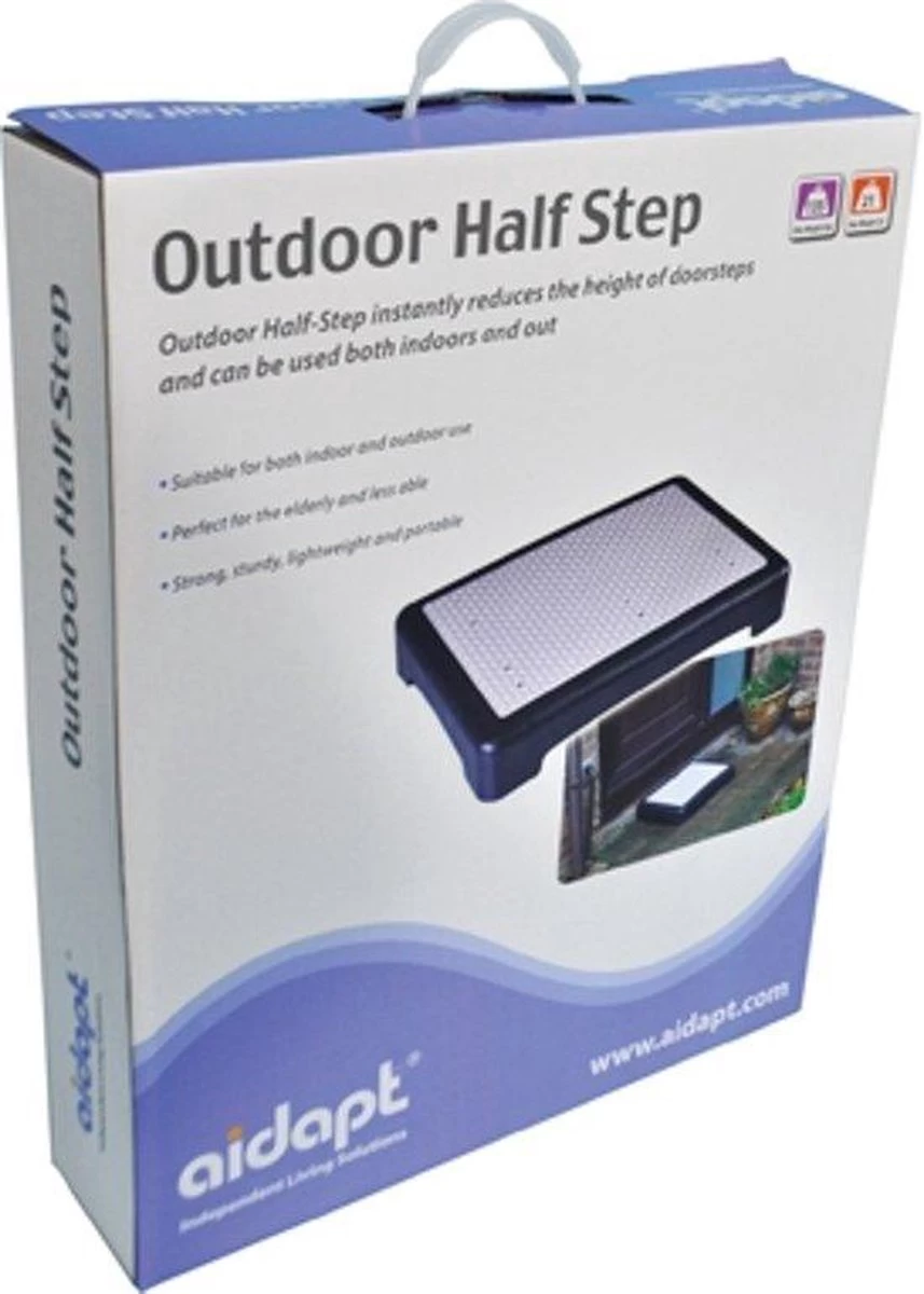 De Outdoor Half Step is een perfect hulpmiddel voor ouderen of mensen met een beperkte mobiliteit rond het huis. Als je het moeilijk vindt om je voeten op te tillen is dit het product voor you. Het opstap plateau kan u helpen. U plaatst het opstapplateau voor een hoge drempel bij de deur. Zo hoeft u niet in een keer in de deuropening te stappen. Het beschikt over een extra groot platform waarmee je beter in evenwicht blijft. Ook ideaal voor indoor trappen! Het heeft een duurzame, zware plastic oppervlakte met grip kuiltjes voor extra veiligheid. De weerbestendige rubber mat zorgt voor een betere grip en gaten voorkomen dat het plateau onder water komt te staan. Het grote oppervlak van het plateau betekent ook dat er voldoende ruimte is om volledig op te staan.