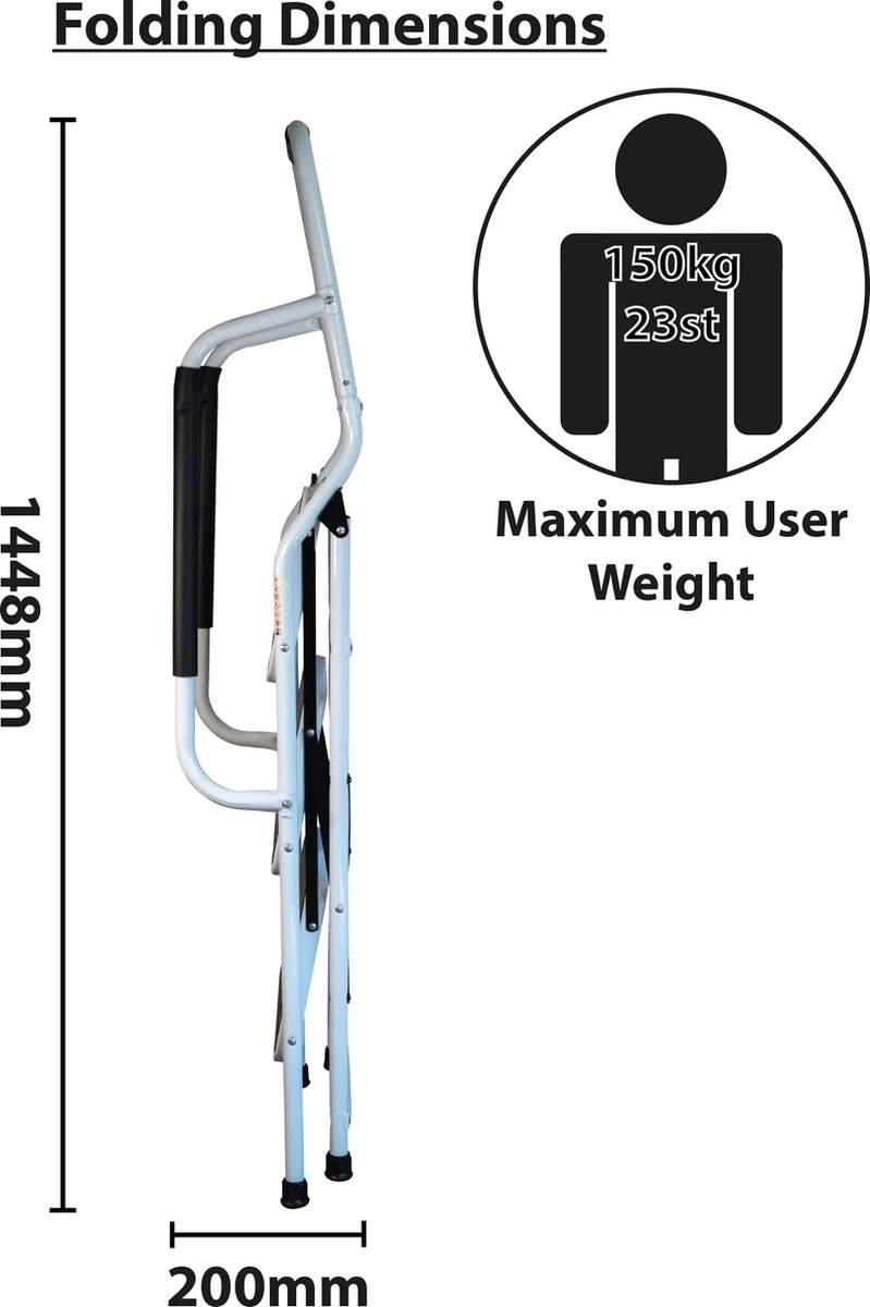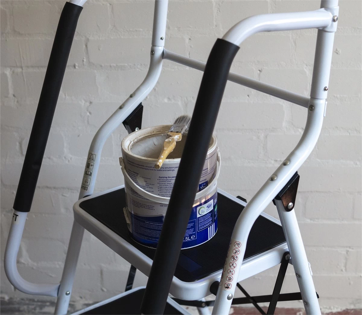 De opstapkruk met leuning is een veelzijdige opstap die zowel binnen als buiten kan worden gebruikt, ideaal voor schoonmaken, het uitvoeren van huisrenovaties, doe-het-zelf-klussen en het bereiken van moeilijk bereikbare plaatsen. Het opvouwbare ontwerp zorgt voor eenvoudige opslag en past op smalle plaatsen. Het lichtgewicht en dichte ontwerp zorgen voor gemakkelijk vervoer tijdens het gebruik. Deze trapladder heeft een veilig en stevig ontwerp. De antislip brede pedalen geven gebruikers een evenwichtig gevoel, en de rubberen hulzen beschermen uw vloer tegen krassen en verminderen de kans op uitglijden. De rubberen leuning zorgt voor extra grip. Verkrijgbaar als 2 of 3 treden model.