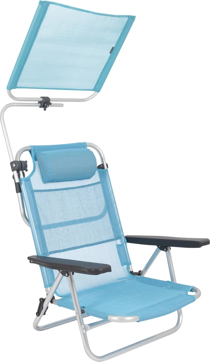 Een stijlvol zonnescherm. Deze is eenvoudig te bevestigen aan het frame van de meeste kampeerstoelen en stretchers. Daarnaast is het scherm in iedere gewenste richting te draaien.