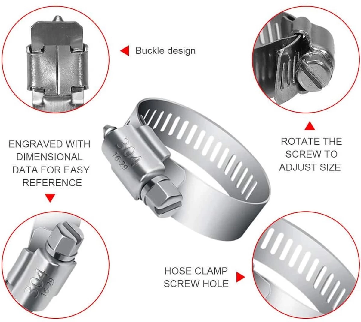 [PREMIUM KWALITEIT] – De buisklemmen zijn gemaakt van 0,023” dik premium 304 roestvrij staal met gladde rand. De roestvrije slangklemmen bieden uitstekende weerstand tegen corrosie en roest wanneer gebruikt in ruwe omstandigheden.