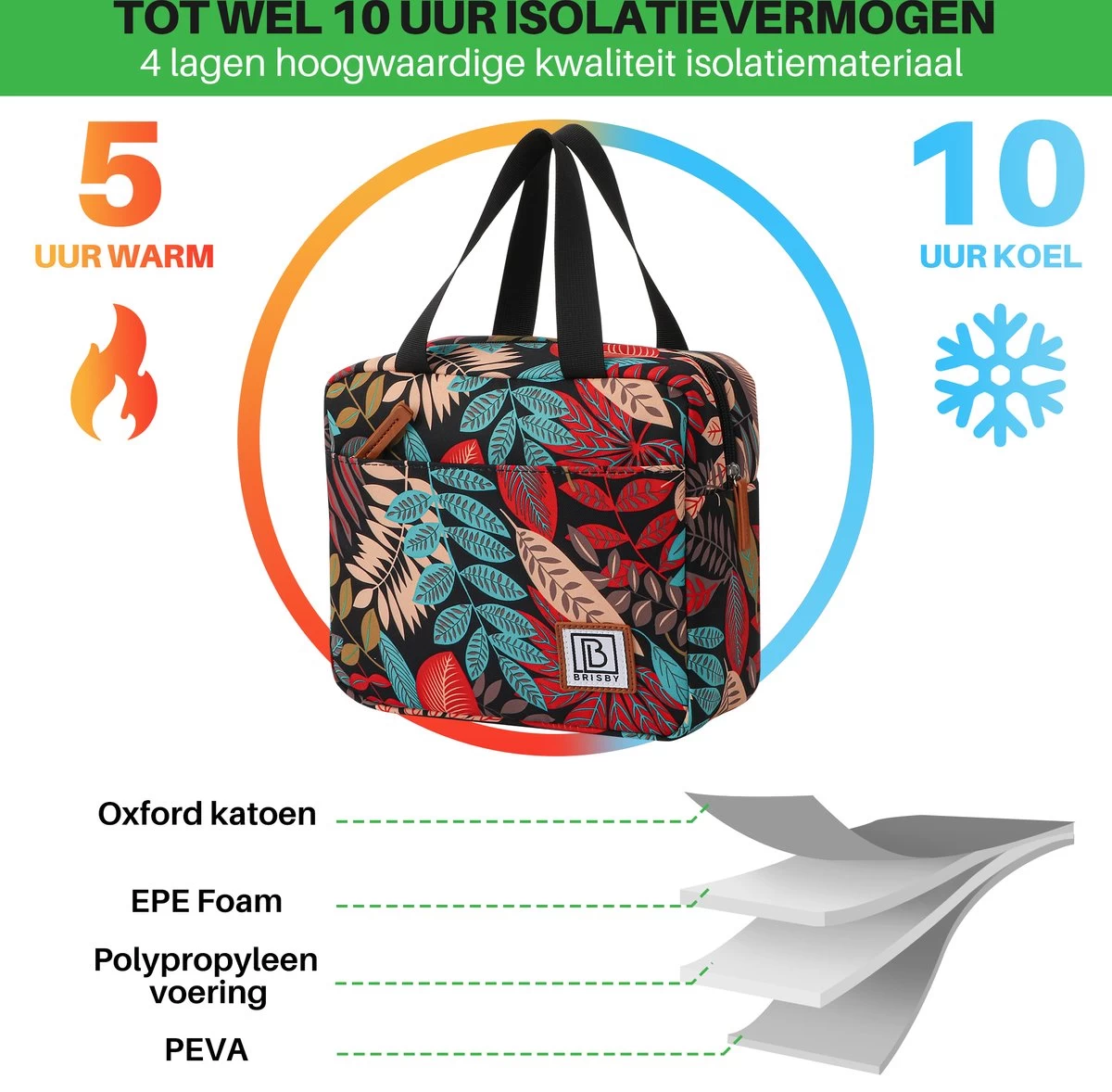 Brisby 4 Laags Geïsoleerde Koeltas – Lunchtas 4 liter – Jungle – Gratis koelelement – Koelen en warm houden