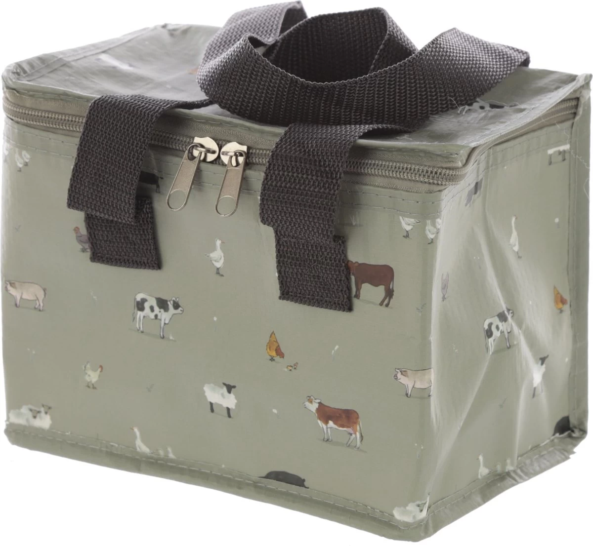 Kleine Koeltas Voor Lunch Grijs Met Boerderij Dieren Print 16 X 21 X 14 Cm 4,7 Liter – Koeltassen