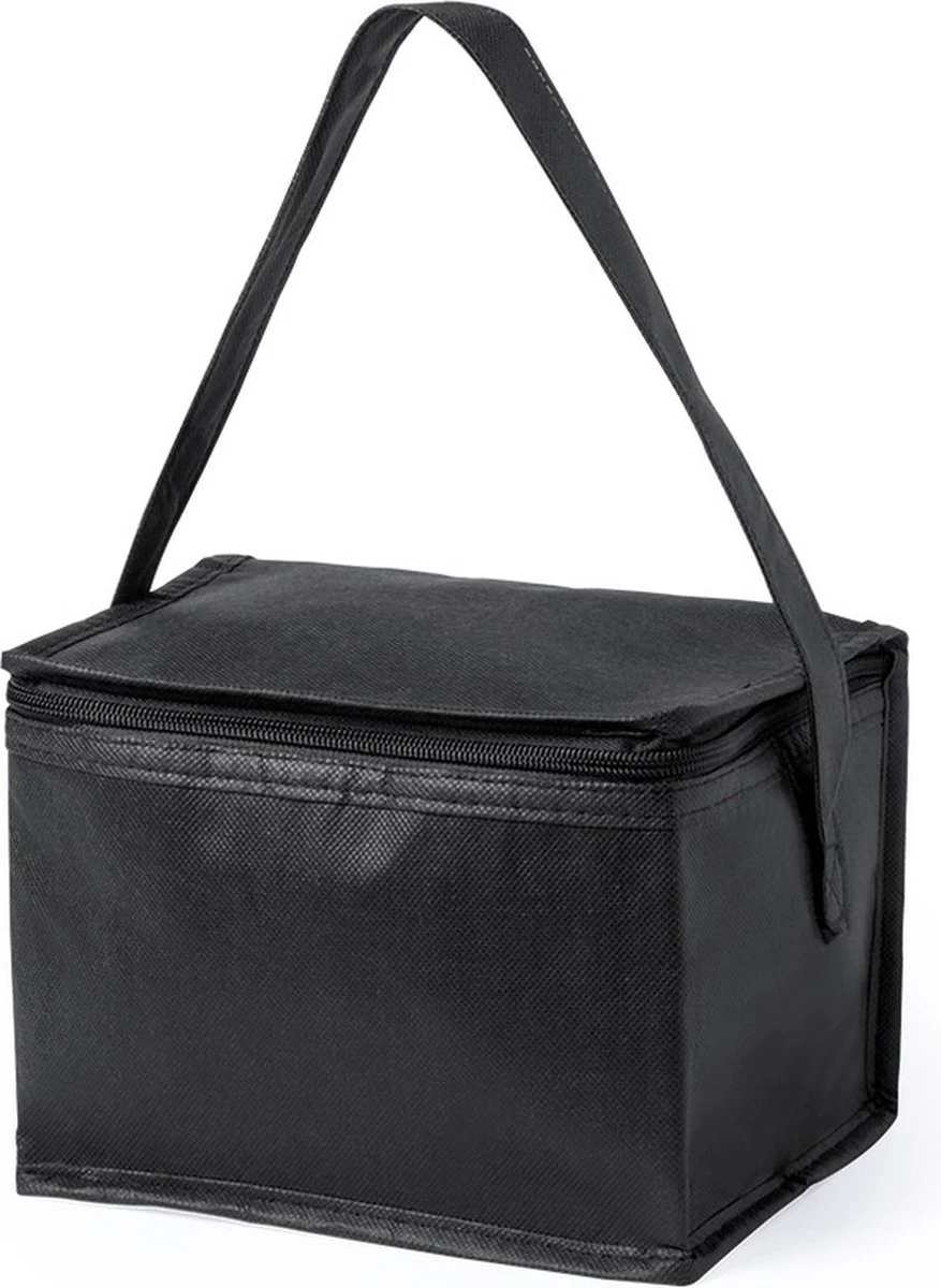 Mini koeltasje voor 6 blikjes inclusief 2 koelelementen. Handige zwarte koeltas met ruimte voor 6 blikjes om te koelen. De koeltas is gemaakt van non-woven materiaal met een isothermische binnenkant van aluminium. Afmetingen: 21 x 15 x 15 cm. Compacte koelboxen en elementen.