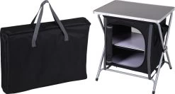 Deze opvouwbare opbergkast is geschikt voopr kamperen en outdooractiviteiten. Aan de opbergtas zit een handig handvat waardoor hij makkelijk mee te nemen is.