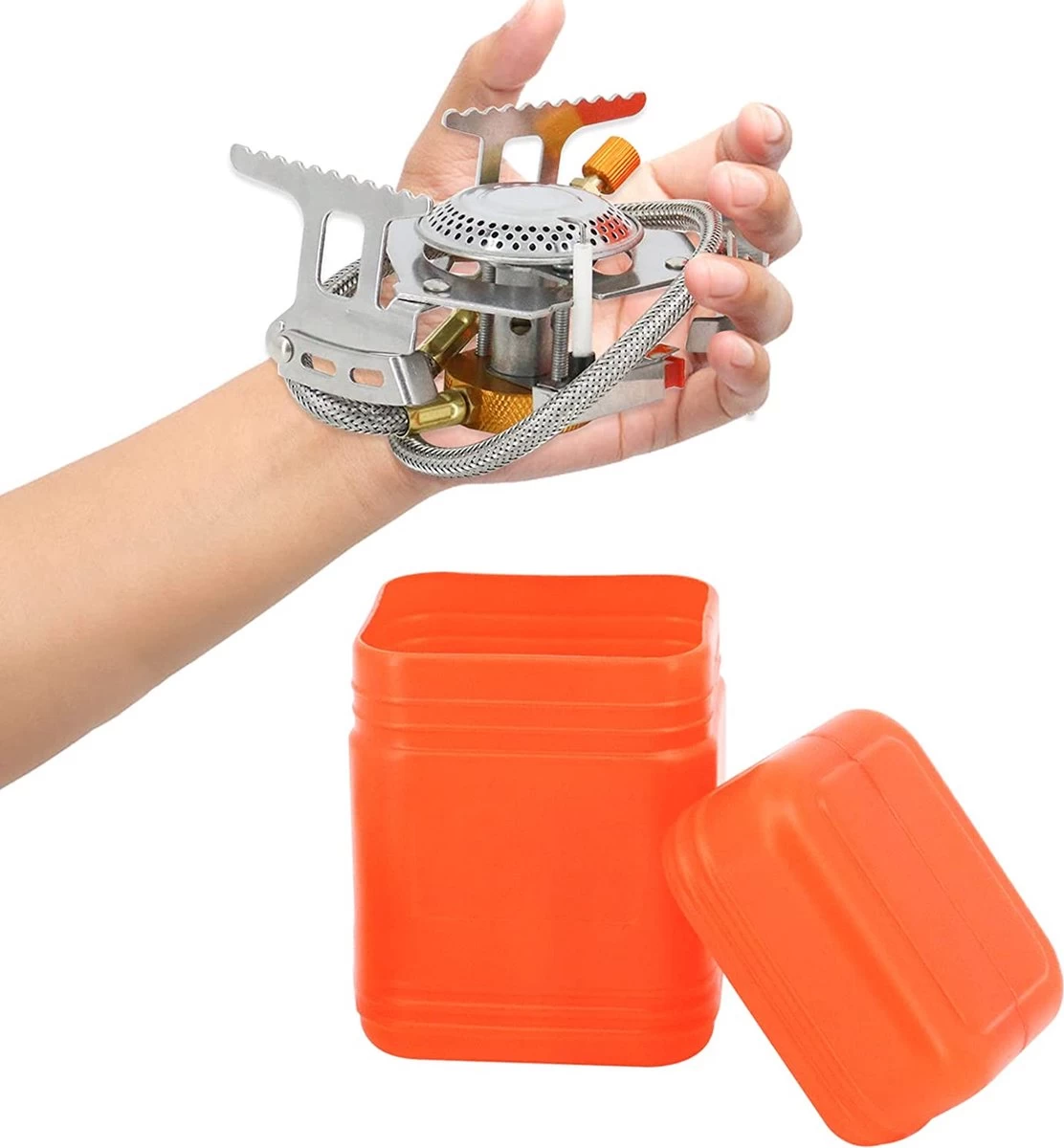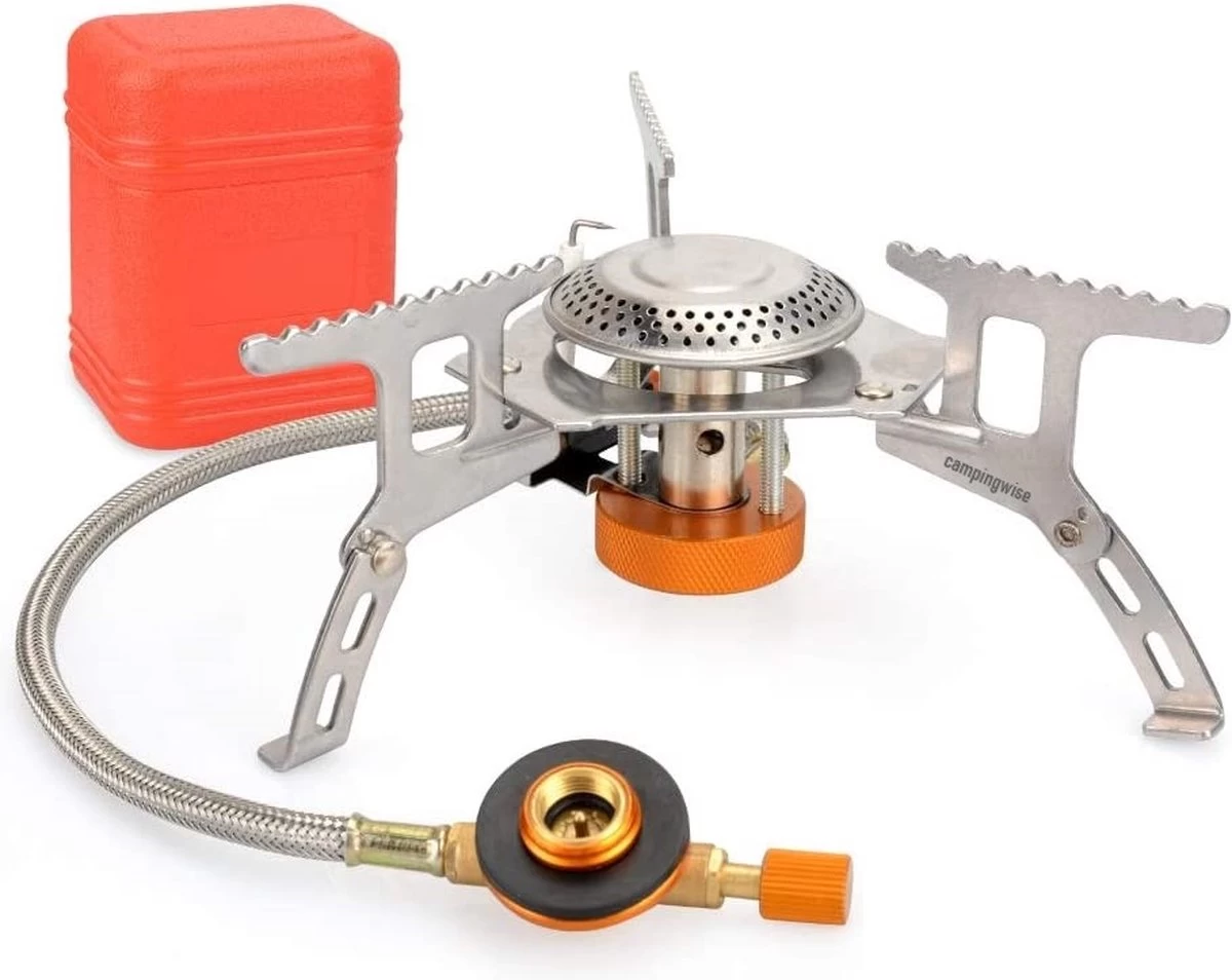 Deze ultralichte gasbrander is volledig inklapbaar en makkelijk mee te nemen in de handige opbergdoos.