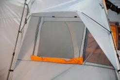 De ventilatieopening aan de zijkant zorgt voor een optimale luchtcirculatie en de aparte ventilatieafdekking boven het tentdak beschermt tegen regen en sneeuw.